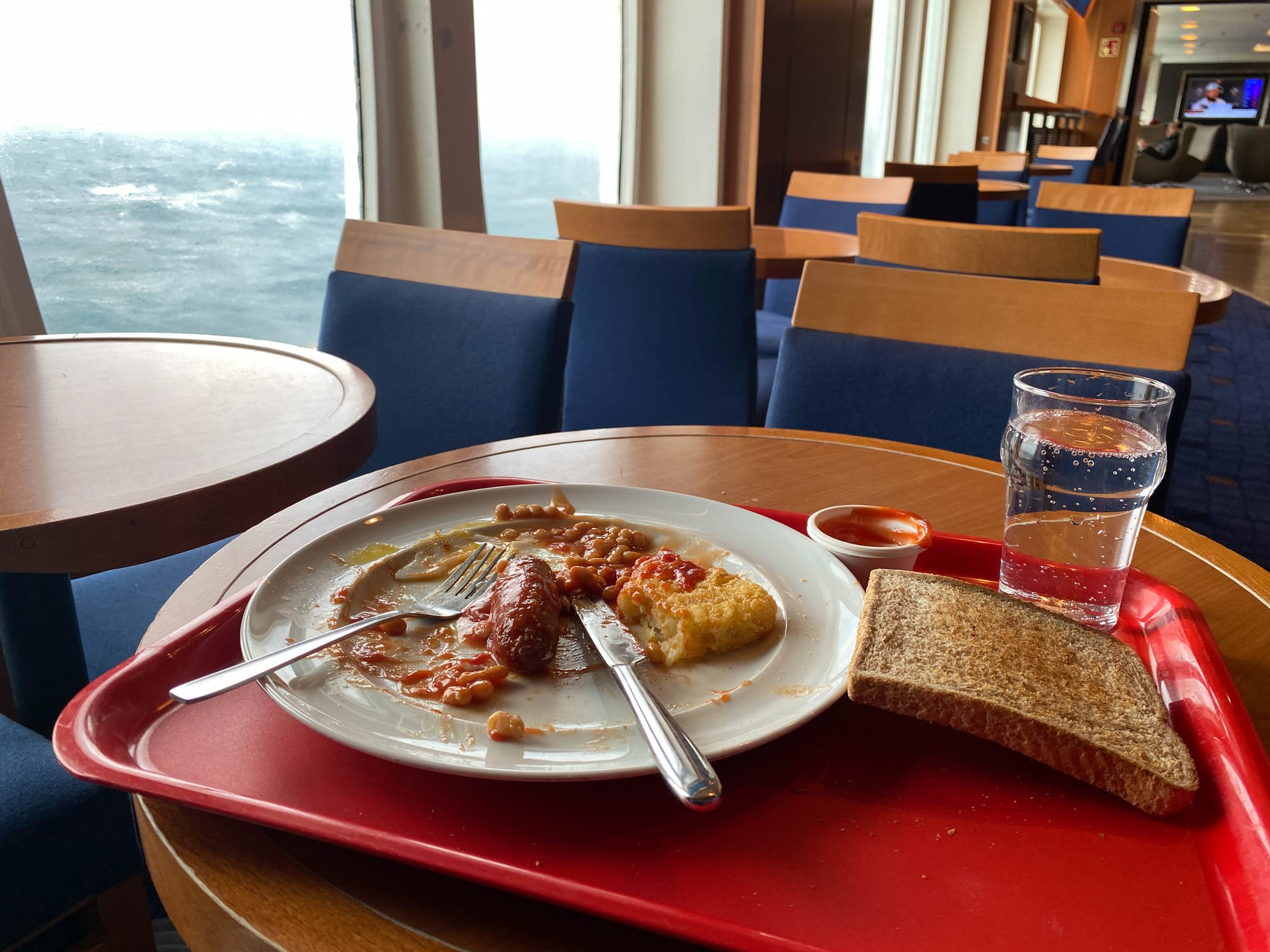 I guess I must not suffer from seasickness, because it was a windy morning with turbulent seas (so rough that an announcement was made and barriers put across some doors leading to the decks) and at breakfast time I saw there was no one else there but me! I ate a good big breakfast that I wasn't sure if I was allowed to call a Full Irish yet, but I was definitely full after it!