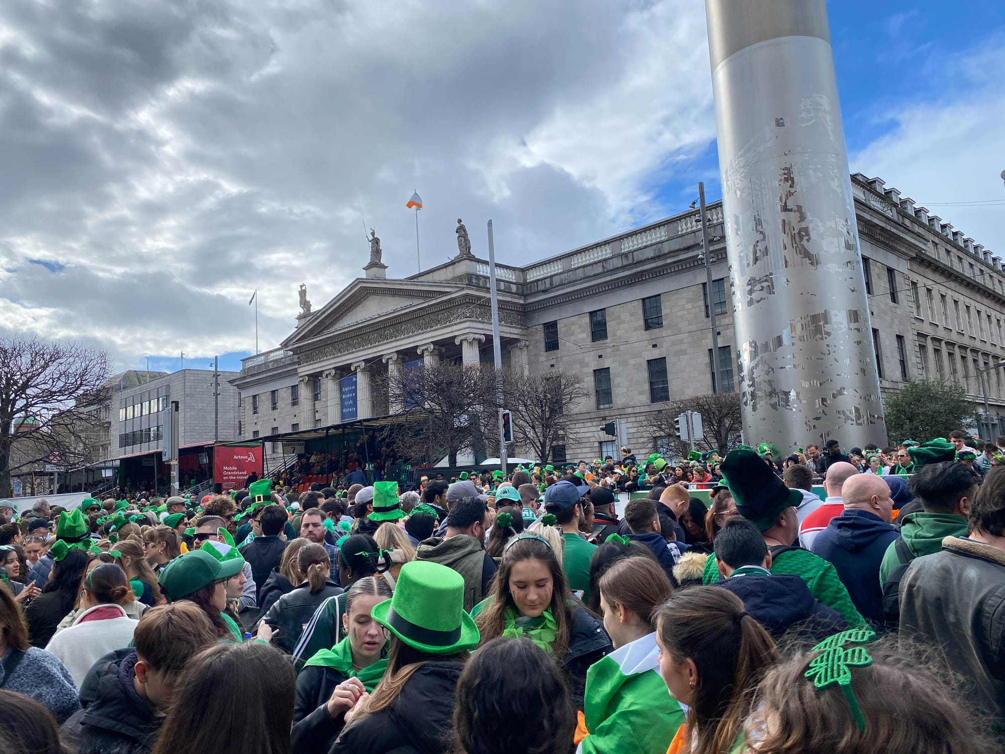 Waiting with thousands others for the Dublin St Patricks Day 2024 Parade to begin...course I had to buy a scarf and join in