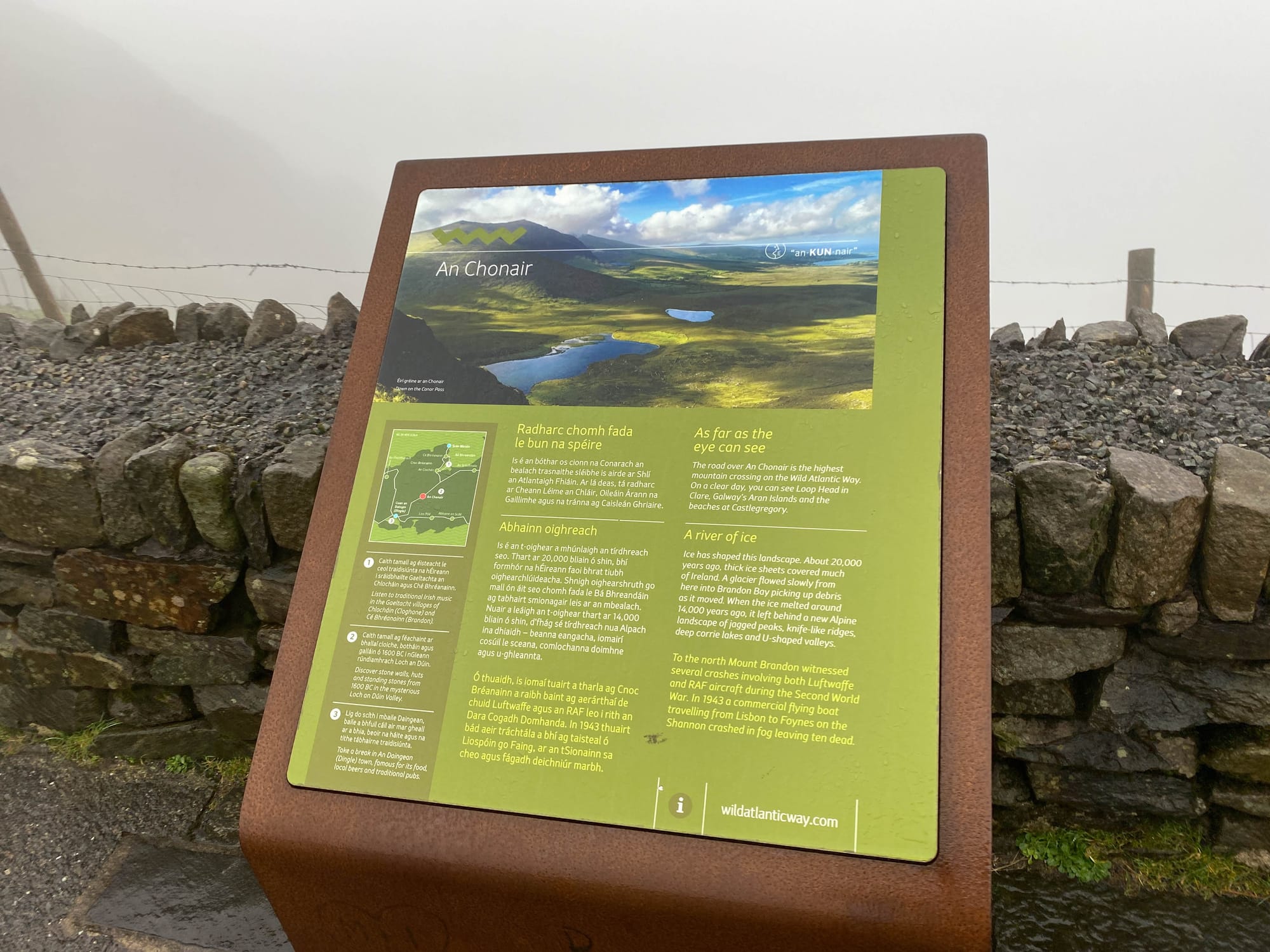 Not everything went to plan with the weather though. A few people I spoke to when I was driving around the Dingle Peninsula suggested I drive up to the Conor Pass and go to An Chonair to see the amazing view. So I made the detour and the drive was beautiful...An Chonair/Conor Pass is one of the highest mountain ranges in Ireland that is reachable by asphalt road. It was a grey, rainy day and as I drove up, the mist got thicker and thicker. I finally made it to the top, and parked up where Google Maps told me I should be seeing the spectacular views...and the fog was so thick that I couldn't see more than a metre ahead of me! There was an info board there showing what I knew must be stretching out in front of me, and all I could do was laugh...and drive back down barely able to see anything! The photo on the right below is one I found online which shows what I should have been able to see 😂
