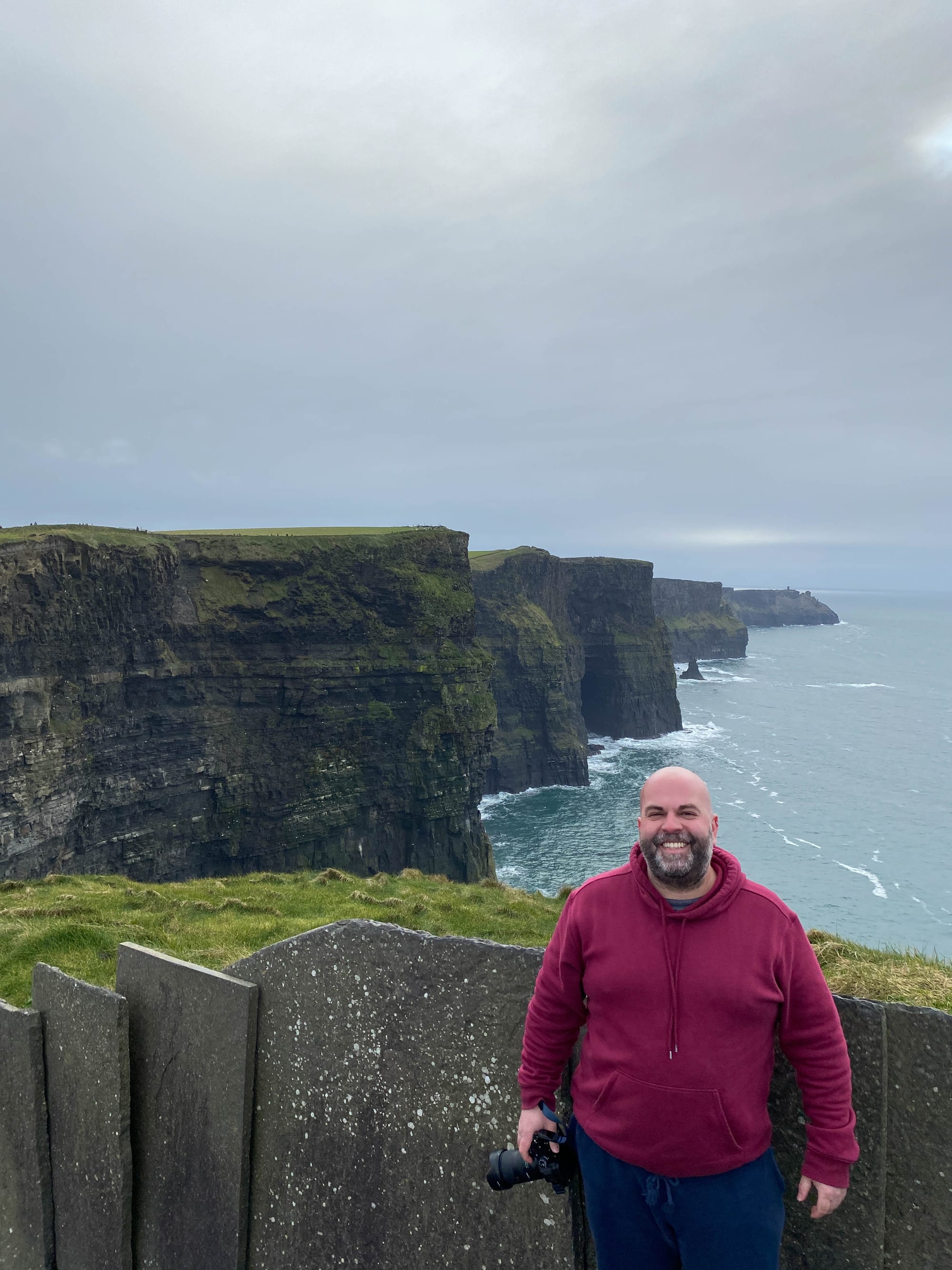 It is hard to choose my favourite view or landmark that I saw...I got to see so much history and indescribable sights. But one that had been on my bucket list for years, was to see the famous Cliffs of Moher. And the only thing with going on sabbatical in March, is that the weather everyday would change a lot. It went from wind and rain to sunny and I found myself planning my driving and seeing things, in between the bad weather. It was also a bit of an adventure and fun to be out in the wind & rain on the cliffs with other travellers and laughing about it all! I was around Lahinch and Doolin near Moher for about 48 hours exploring everything there, and for almost all of that time it was raining. So I kept trying to bide my time and resist the temptation to just run up and see the Cliffs, as I was hoping for a window of good weather to open up. Finally I was sat in my car drinking a (nice & strong) double espresso and I saw the rain was easing up, I looked on my phone and it showed that the next 2 hours would be cloudy but not raining so I turned the car around and drove as fast as I could! For the next few hours I got to walk around the Cliffs of Moher and they were INCREDIBLE. The views from left to right were breathtaking! The cliffs on one side, with the castle fort on the right, I just didn't want to stop taking it in. There were a lot of other people up there visiting, and it was fun talking with them and all of us offering to take photos for each other.